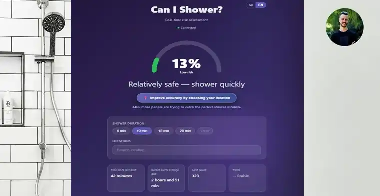 En el encierro (como todos), pero con esa inquietud israelí que no se apaga ni bajo fuego, creó CanIShower.com. No nació en un laboratorio de defensa de miles de millones; nació de la necesidad humana de recuperar un momento de dignidad diaria.