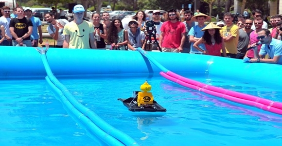 Estudiantes de Technion de Israel compiten en este divertido evento en una carrera de barcos propulsados por gomas elásticas que tienen que recorrer ocho metros, anclarse por medio de un imán, y disparar un chorro de agua a un embudo desde una distancia de tres metros, todo esto es en el menor tiempo posible y con el menor número de bandas de goma.