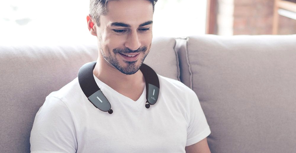En un dispositivo que va apoyado comodamente sobre los hombros, BeHear PROXY conjuga un par de altavoces inalámbricos (con micrófono), montados comoamente sobre tu cuello.