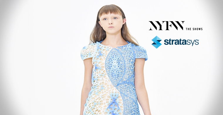 Stratasys, que fabrica equipos para impresion 3D, en colaboración con threeASFOUR y Travis Fitch han puesto sobre la pasarela de New York vestidos 3D.
